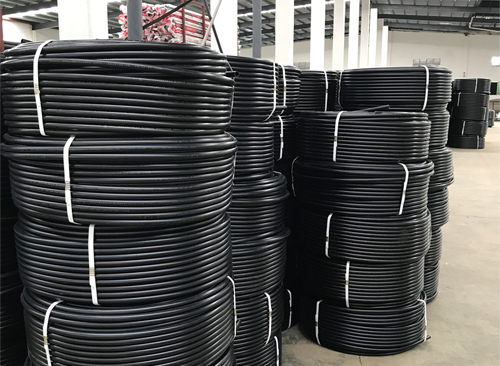 聚乙烯(PE)管材均以PE100原料生產,產品規格範圍為dn20mm-dn630mm。管材顏(yán)色為黑色,並加入色條以區別管道用途,例如,藍(lán)色為給水管,綠色為排水管,紫色為回收水管等。管材供貨長度一般為 6米、9米、12米,dn63mm(含)以下管材(cái)可以盤卷。